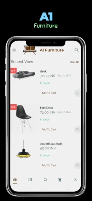 แอป A1 Furniture Online Ecommerce Store เป็นแอปสาธิตที่จัดแสดงเฟอร์นิเจอร์หลากหลายหมวดหมู่ เช่น เฟอร์นิเจอร์สำหรับเครื่องล้างจาน เฟอร์นิเจอร์จำเป็น เฟอร์นิเจอร์สำหรับเครื่องกำจัดเศษอาหาร เฟอร์นิเจอร์กระจก และเฟอร์นิเจอร์ฮาร์ดแวร์ สำรวจสินค้าเพื่อแรงบันดาลใจในการตกแต่งบ้านของคุณ