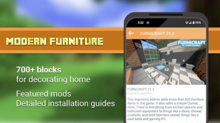 เบื่อไหมกับการตกแต่งโลก Minecraft ของคุณด้วยบล็อกพื้นฐานเดิมๆ? ได้เวลาปลดล็อกจินตนาการและเปลี่ยนโฉมพื้นที่เสมือนจริงของคุณให้กลายเป็นบ้านในฝันที่เต็มไปด้วยสไตล์และฟังก์ชันการใช้งาน! "Furniture mod for Minecraft 2025" คือสุดยอดแหล่งรวมม็อดเฟอร์นิเจอร์ที่จะยกระดับประสบการณ์การเล่นเกม Minecraft Pocket Edition ของคุณให้เหนือชั้นยิ่งกว่าที่เคย ด้วยคอลเลกชันที่คัดสรรมาอย่างดี คุณจะได้พบกับทุกสิ่งที่คุณต้องการเพื่อสร้างสรรค์ห้องนั่งเล่น ห้องครัว ห้องนอน หรือแม้แต่สวนสวยๆ ให้สมบูรณ์แบบตามใจคุณ