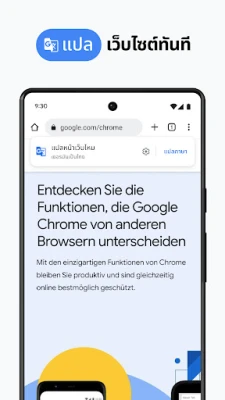 เปิดโลกดิจิทัลของคุณให้กว้างขึ้นและฉลาดกว่าที่เคยด้วย Chrome ที่สุดแห่งประสบการณ์การท่องเว็บจาก Google สัมผัสความเร็วในการค้นหาที่ไม่เหมือนใคร ไม่ว่าจะเป็นการพิมพ์ข้อความหรือออกคำสั่งด้วยเสียง คุณก็จะได้คำตอบในพริบตา และไม่ใช่แค่ข้อความเท่านั้น Chrome ยังช่วยให้คุณค้นหาสิ่งรอบตัวด้วย Google Lens เพียงใช้กล้องของคุณ ยกระดับการเดินทางบนโลกออนไลน์ด้วย Google แปลภาษา ที่พร้อมพลิกโฉมหน้าเว็บไซต์ต่าง ๆ ให้กลายเป็นภาษาที่คุณเข้าใจได้ง่ายดายกว่า 130 ภาษาในคลิกเดียว