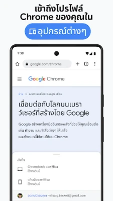 เชื่อมโยงทุกอุปกรณ์ของคุณเข้าด้วยกันอย่างราบรื่น ไม่ว่าจะเป็นสมาร์ทโฟน แท็บเล็ต หรือคอมพิวเตอร์ ด้วย Chrome คุณจะสามารถซิงค์บุ๊กมาร์ก แท็บที่เปิดอยู่ และรหัสผ่านทั้งหมดให้เข้าถึงได้ง่ายทุกที่ทุกเวลา จัดระเบียบการท่องเว็บของคุณให้เป็นหมวดหมู่ด้วยกลุ่มแท็บ เพื่อความสะดวกในการทำงานหรือพักผ่อน และประหยัดเวลาอันมีค่าด้วยคุณสมบัติการป้อนข้อความอัตโนมัติ ที่ช่วยเติมข้อมูลการชำระเงิน ที่อยู่ หรือรหัสผ่านที่บันทึกไว้ได้อย่างรวดเร็วและแม่นยำ ทำให้ประสบการณ์ออนไลน์ของคุณง่ายดายยิ่งขึ้น
