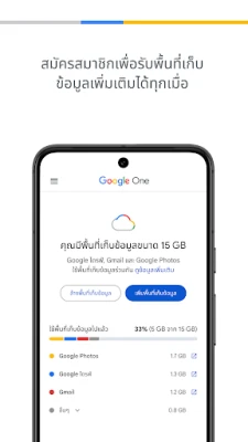 ชีวิตดิจิทัลของคุณเต็มไปด้วยช่วงเวลาอันล้ำค่าและข้อมูลสำคัญใช่ไหม? ไม่ต้องกังวลอีกต่อไป! Google One พร้อมปกป้องทุกสิ่งที่คุณหวงแหน ตั้งแต่ภาพถ่ายความทรงจำ รายชื่อเพื่อนฝูง ไปจนถึงข้อความสำคัญ ด้วยระบบสำรองข้อมูลอัตโนมัติที่อัจฉริยะ เพียงเชื่อมต่ออินเทอร์เน็ต ข้อมูลบนสมาร์ทโฟนของคุณก็จะถูกบันทึกไว้อย่างปลอดภัยบนคลาวด์ทันที มั่นใจได้ว่าทุกช่วงเวลาจะไม่สูญหายไปไหน