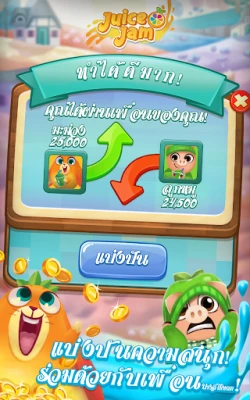 Juice Jam (จูซ แจม) ชวนคุณผจญภัยจับคู่ 3 อันน่าตื่นเต้น! เดินทางสู่โลกผลไม้แสนประหลาดกับกีวีและมะม่วง เพื่อเสิร์ฟน้ำผลไม้สดใหม่ พิชิตด่านนับร้อย เอาชนะหัวหน้าสุดท้าทาย และปลดล็อกพาวเวอร์อัพใหม่ สนุกกับตัวละครแปลกตาและเกมเพลย์สุดมันส์!