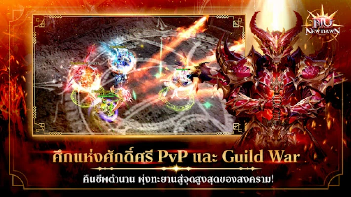 ก้าวเข้าสู่สนามรบแห่งเกียรติยศ ที่ซึ่งการต่อสู้ PvP แบบเรียลไทม์จะตัดสินว่าใครคือผู้แข็งแกร่งที่แท้จริง! รวมพลังกับกิลด์ของคุณเพื่อพิชิตสมรภูมิ Guild War หรือเลือกเส้นทางนักรบผู้โดดเดี่ยวเพื่อสร้างชื่อเสียงให้กึกก้องในจักรวาล **MU New Dawn** เลือกเส้นทางโชคชะตาของคุณจาก 5 อาชีพคลาสสิก แต่ละอาชีพมาพร้อมกับทักษะเฉพาะตัวที่สวยงามและชุดเกราะระดับตำนานที่พร้อมจะปลดปล่อยพลังอันไร้ขีดจำกัด พลิกโฉมทุกการต่อสู้ให้เป็นมหากาพย์ที่คุณเป็นผู้กำหนด!