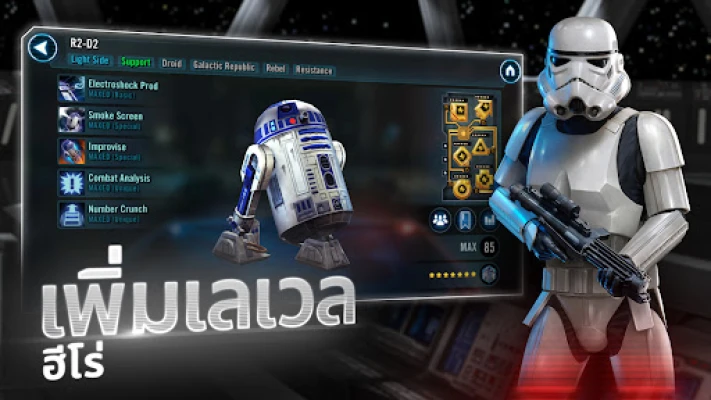 รวบรวมและอัปเกรดฮีโร่ Star Wars™ ระดับตำนานจากยุคต่างๆ! นำลุค สกายวอล์คเกอร์, ดาร์ธ เวเดอร์ และชาวแมนดาลอร์ เข้าสู่การต่อสู้สุดยิ่งใหญ่ สัมผัสการผจญภัยแนว RPG ผสมผสานกลยุทธ์และแอ็กชั่น เพื่อพิชิตกาแล็กซี